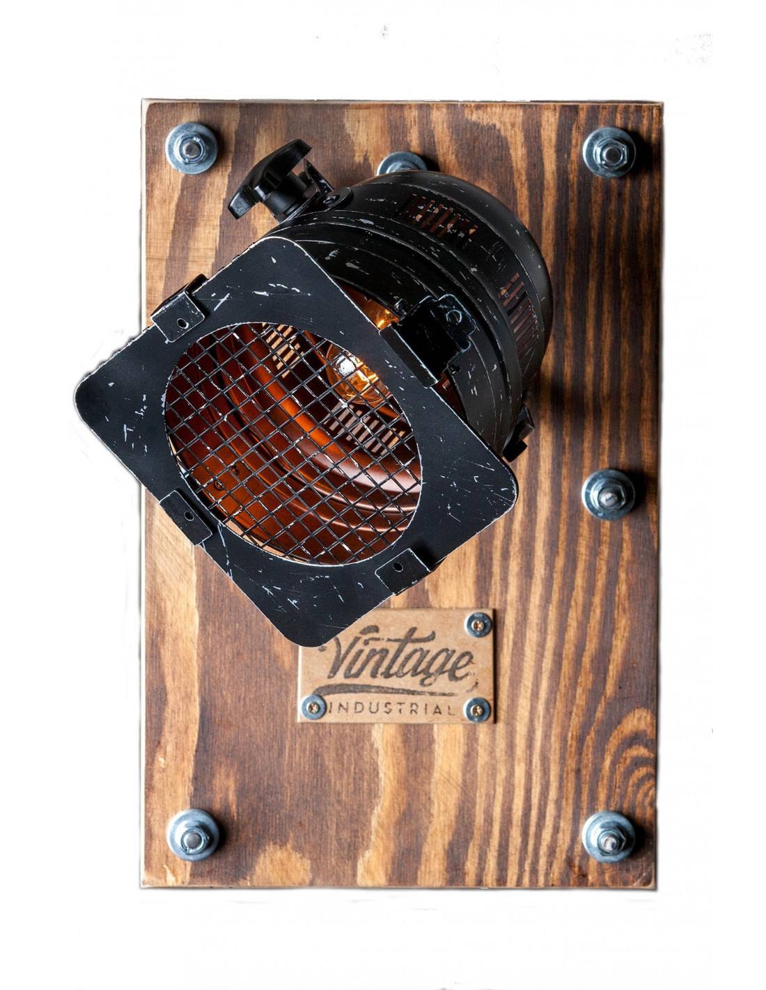 Kinkiet loftowy SCENA REFLEKTOR wykończony drewnem w kolorze brązowym. Reflektor wykonany ze stali, przetarty na zewnątrz na czarno, od wewnątrz na miedź, z możliwością regulacji kąta nachylenia. W przedniej części reflektora można zastosować kolorowy filtr w celu uzyskania dodatkowych efektów świetlnych. Idealny do wnętrz w stylu loftowym, industrialnym.Cały kinkiet jest wykonany ręcznie.