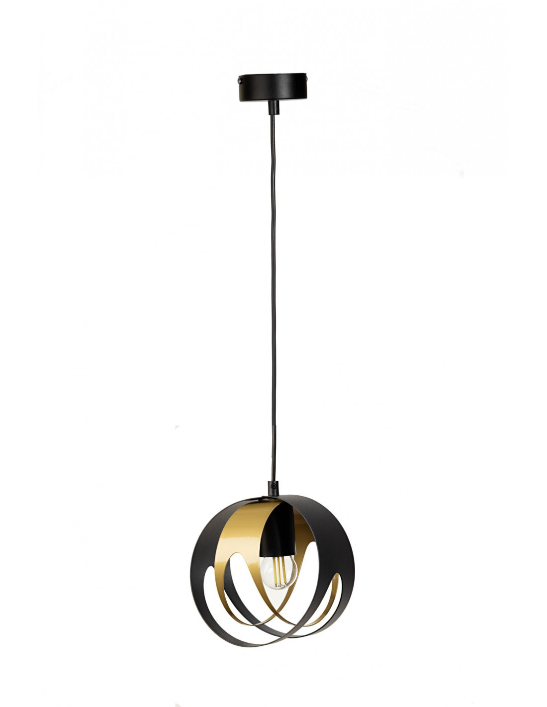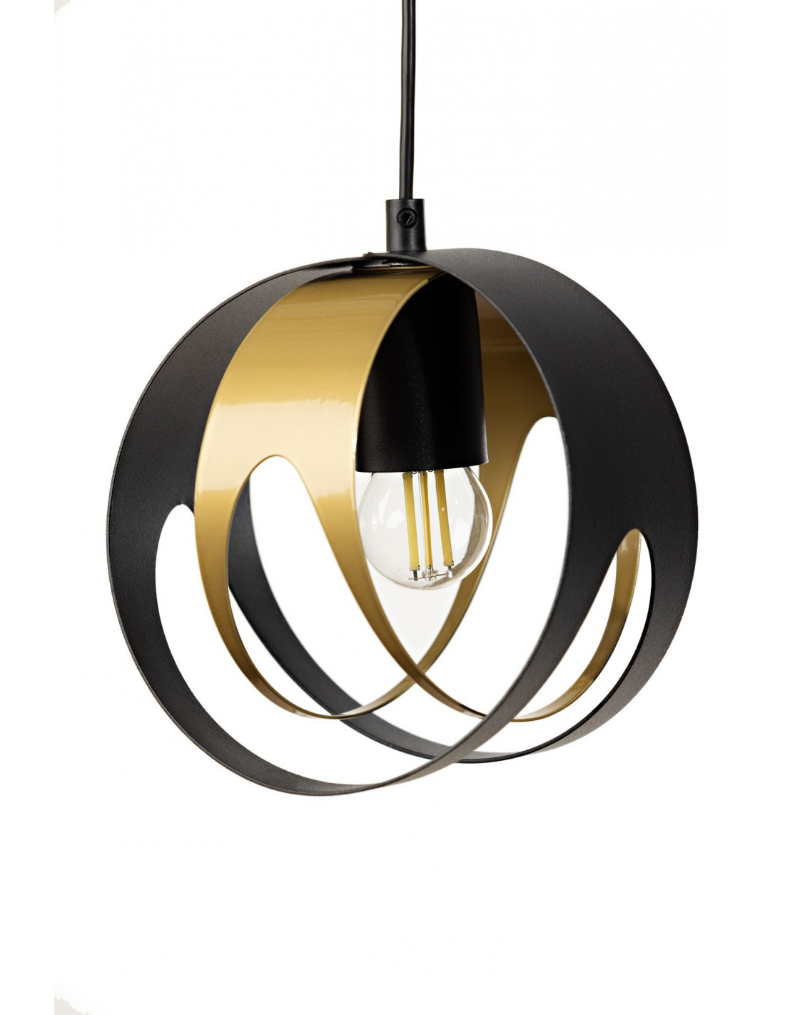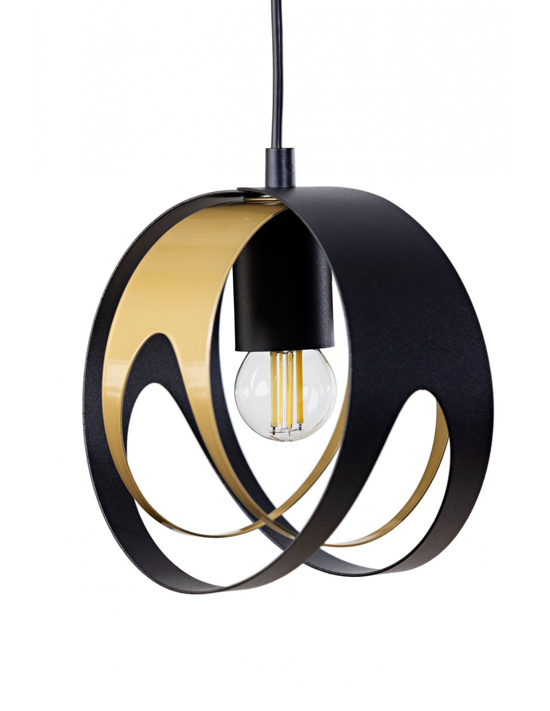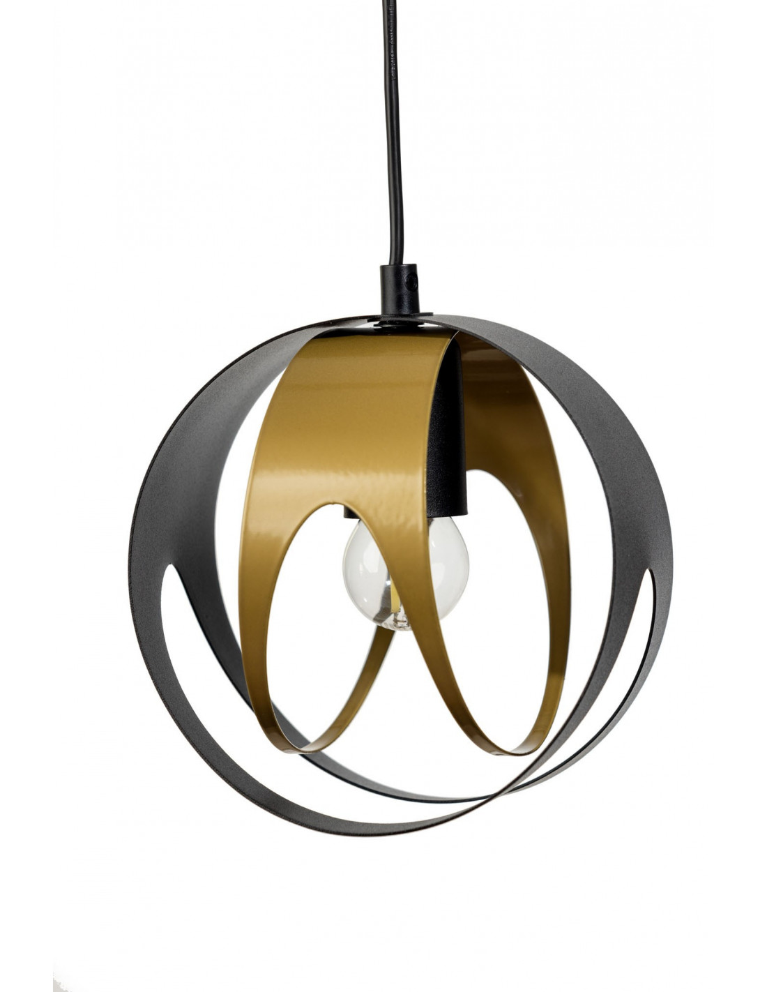 SELENA 1L.w kolorze czarnej drobnej struktury/złoty, należy do grupy designerskich lamp wiszących pomagających w spójnym zespoleniu ze sobą poszczególnych elementów obecnych w pomieszczeniu. To rodzaj oświetlenia, który najczęściej pełni funkcję głównego źródła światła.Forma, kształt lampy odpowiada za wypełnienie przestrzeni dostępnej między sufitem a linią wzroku. Nic nie stoi na przeszkodzie, aby kształt lampy wiszącej nieco zdominował pomieszczenie,nadając mu autorskiego zacięcia.