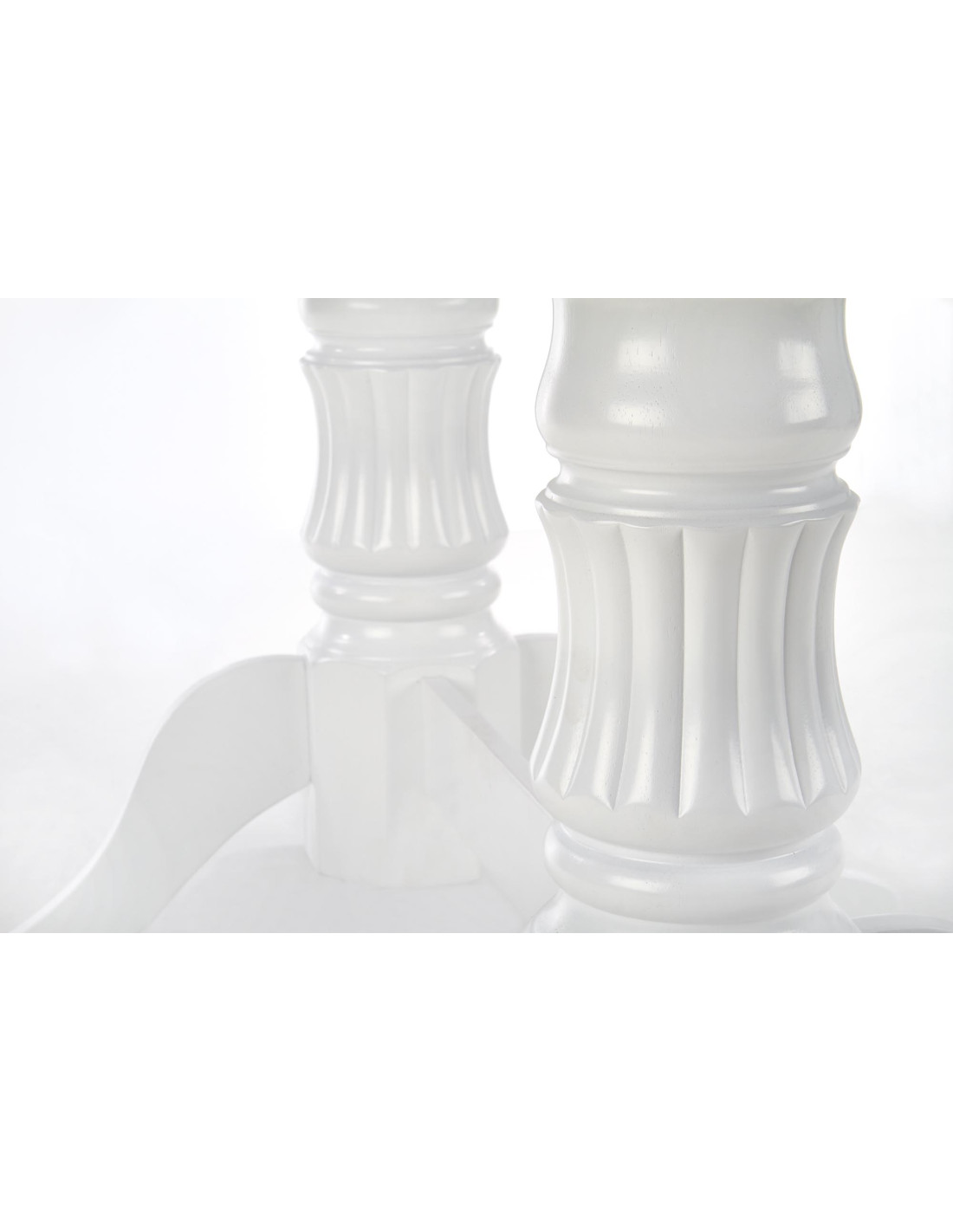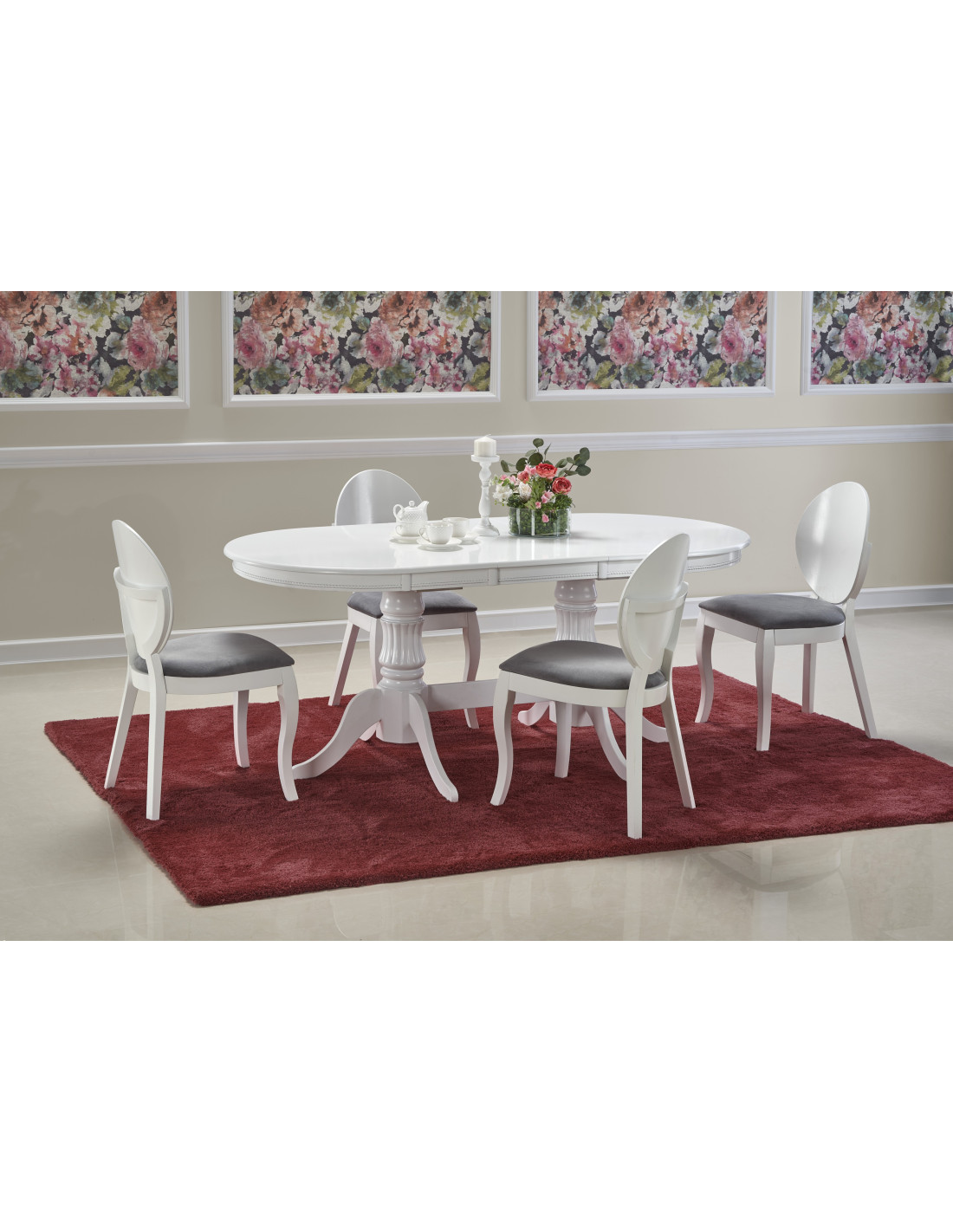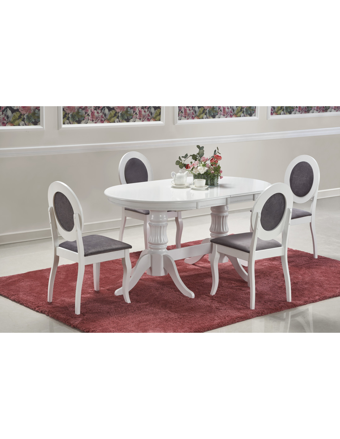 Nadaj styl swojemu wnętrzu z rozszerzanym stołem JONAH, który łączy w sobie klasyczną elegancję z nowoczesnym wykończeniem! Ten biały stół, wykonany z MDF lakierowanego oraz litego drewna, przyciąga wzrok swoimi dekoracyjnymi, rzeźbionymi nogami oraz owalnym kształtem z zaokrąglonymi krawędziami. Idealnie wpasuje się w eleganckie i czyste aranżacje, tworząc atmosferę przytulności podczas rodzinnych spotkań.